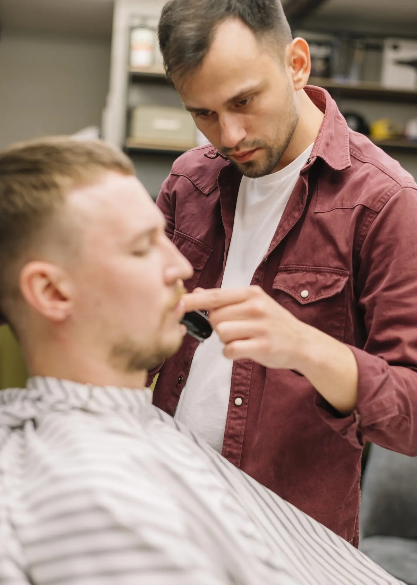 Imagina dos referencias: comisura del labio y lóbulo de la oreja. Conecta suavemente y limpia por encima, nunca por debajo. Trabaja en pasadas cortas, sosteniendo la piel con dos dedos. Un espejo de mano adicional, sostenido diagonalmente, permite comprobar simetrías en segundos sin montar estructuras complejas ni pesadas.